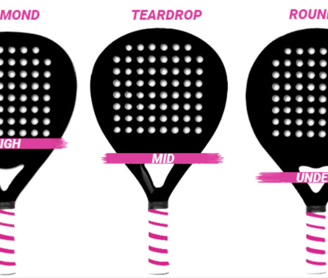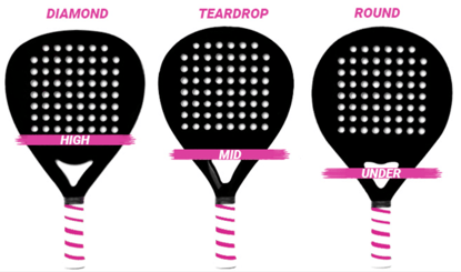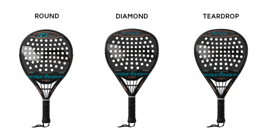 Rackets zijn er meestal in drie verschillende vormen; rond, druppelvormig of diamant. Elke vorm is ontworpen voor een andere speelstijl.