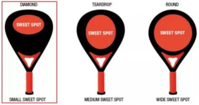 Padel rackets met een bijzonder grote sweetspot in het midden zorgen voor meer balcontrole. Hoe kleiner de sweetspot, hoe krachtiger je slagen zullen zijn; je moet de bal dan echter nauwkeuriger in het midden slaan. Daarom gebruiken beginners padel rackets met een grote sweetspot, terwijl kleinere rackets goed werken voor gevorderde spelers en profs. Ook is er de optie van ellipsvormige sweetspots die snelheid en controle met elkaar in evenwicht brengen.